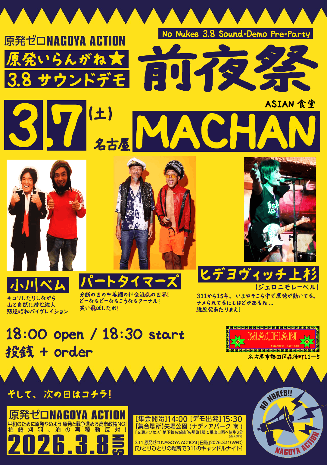 AxD / THE PUNKEES / 秘-TOKAGE / Big Jail Babies / 山本山 / ヒデヨヴィッチ上杉 + Perc.Keita / ミカカとアカノタニン